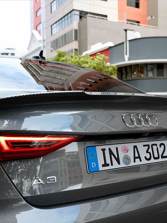 Your eyes are immediately drawn to the wide Audi Singleframe with its striking radiator grille in honeycomb look. On the side, the continuous shoulder line extends to the rear door to emphasise the length of the Audi A3 Sedan. What’s more, the vehicle’s wide track gives it an athletic character.